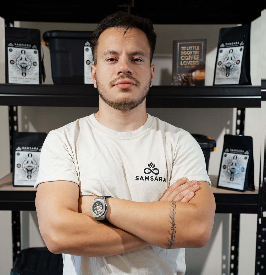Suntem oamenii din spatele Samsara. Privim fiecare lot de cafea ca pe o călătorie: de la fermierii cu care colaborăm, prin focul prăjitorului, până la ceașca din fața ta.